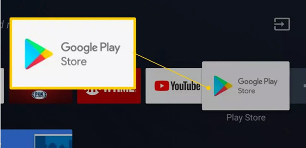В разделе «Приложения», увидите все приложения, которые установлены на телевизоре. Найдите магазин приложений. Скорее всего, это будет Google Play.
