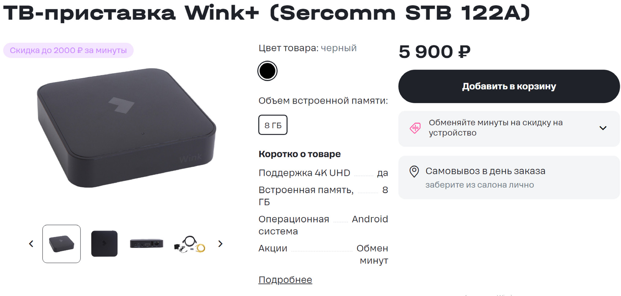 Рис. 3.8. ТВ-приставка Wink+ на сайте Теле2